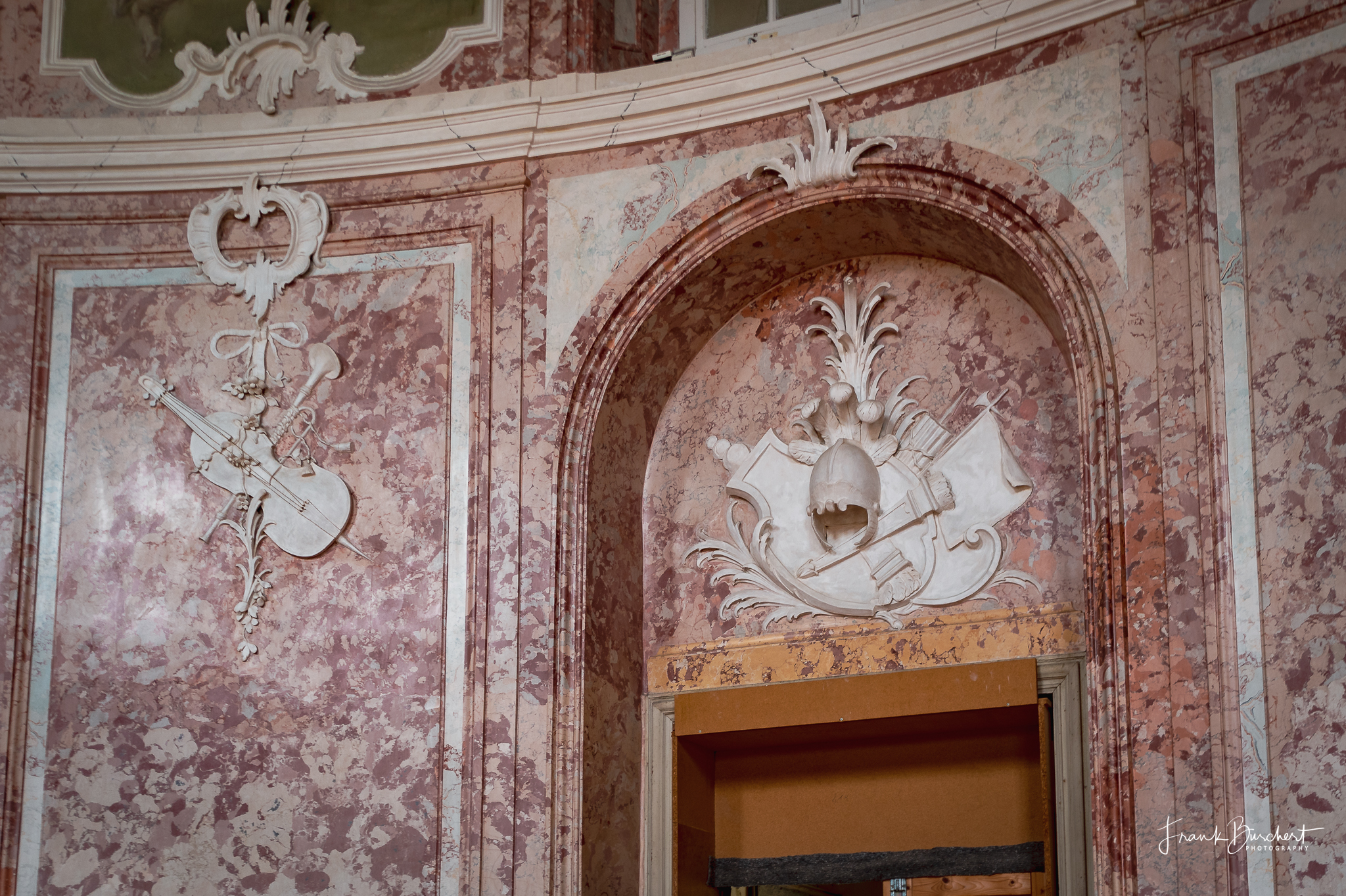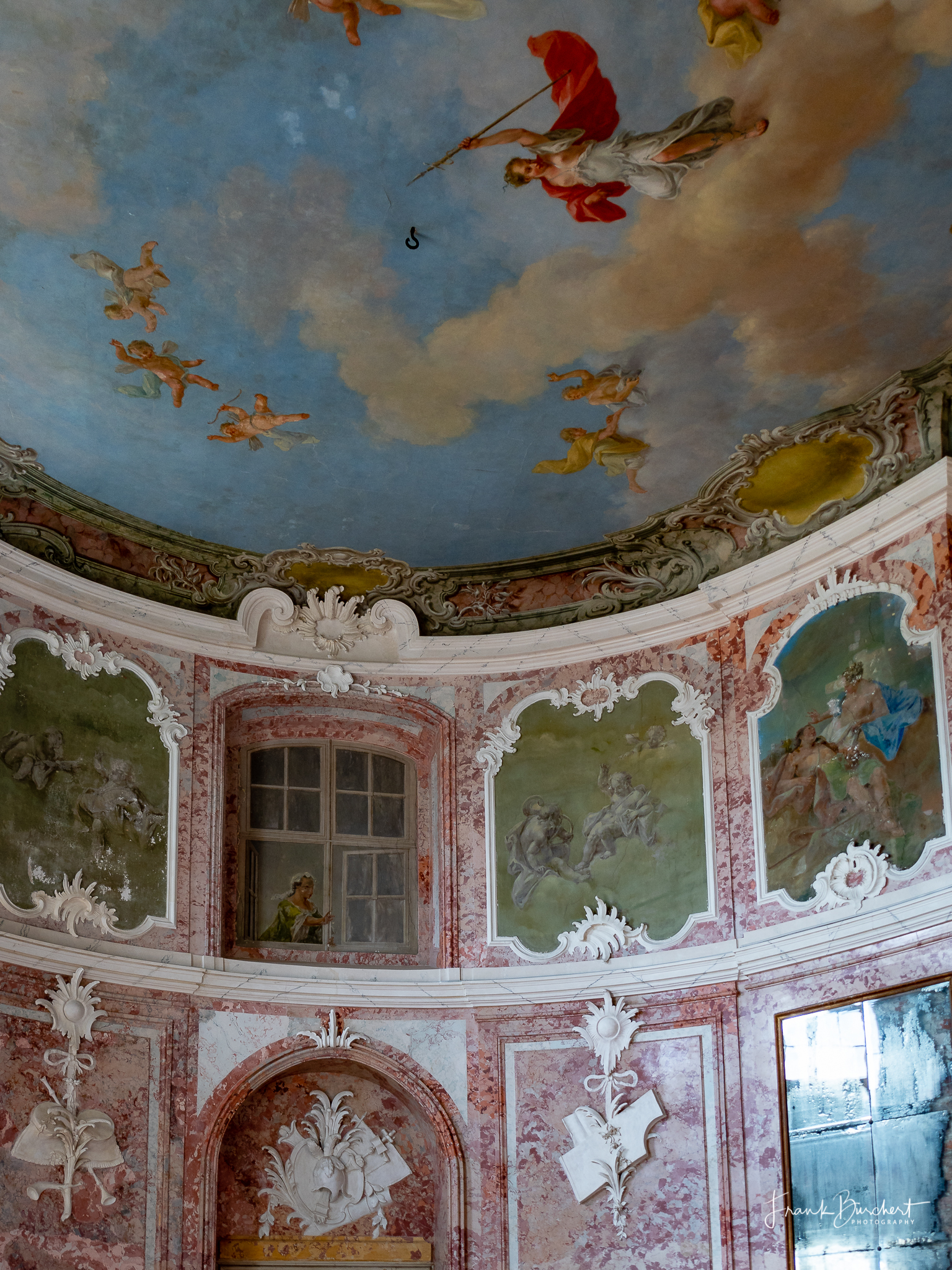 Das Schloss selber ist leider nicht zu besichtigen, da sich dort z.T. noch Wohnungen befinden. Wohl aber die Kirche, die zum Zeitpunkt unseres Besuches leider geschlossen war.
