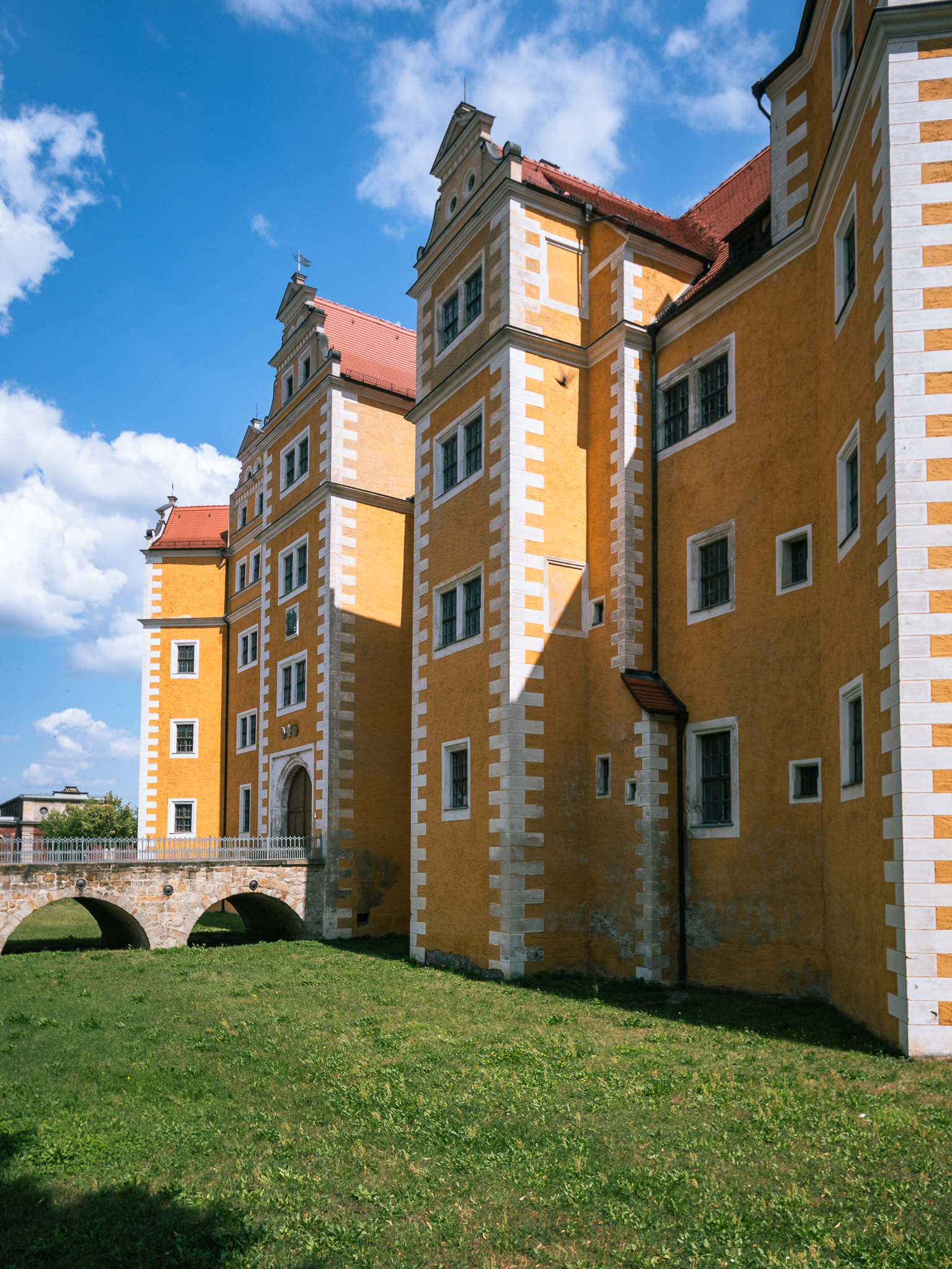 Das Wasserschloss verdankt seinen Namen dem Umstand, dass der Bau auf den von den flussabgewandten Seiten von einem Wassergraben umgeben ist. Wenn ihr um das Schloss gegangen seid, empfehle ich euch auch einen Spaziergang durch den Schlosspark. Der Park wurde im 19.Jahrhundert als englischer Landschaftsgarten angelegt und ist in Teilen auch heute noch erhalten.