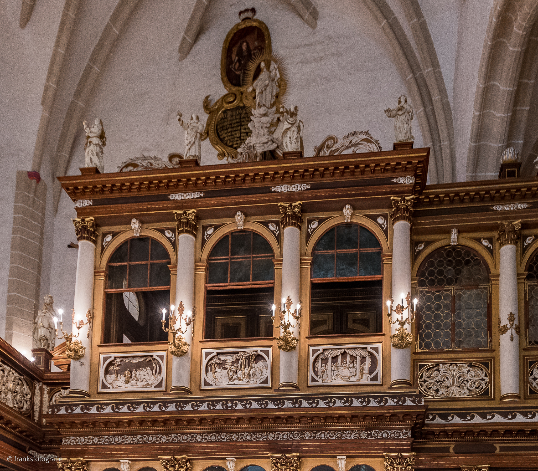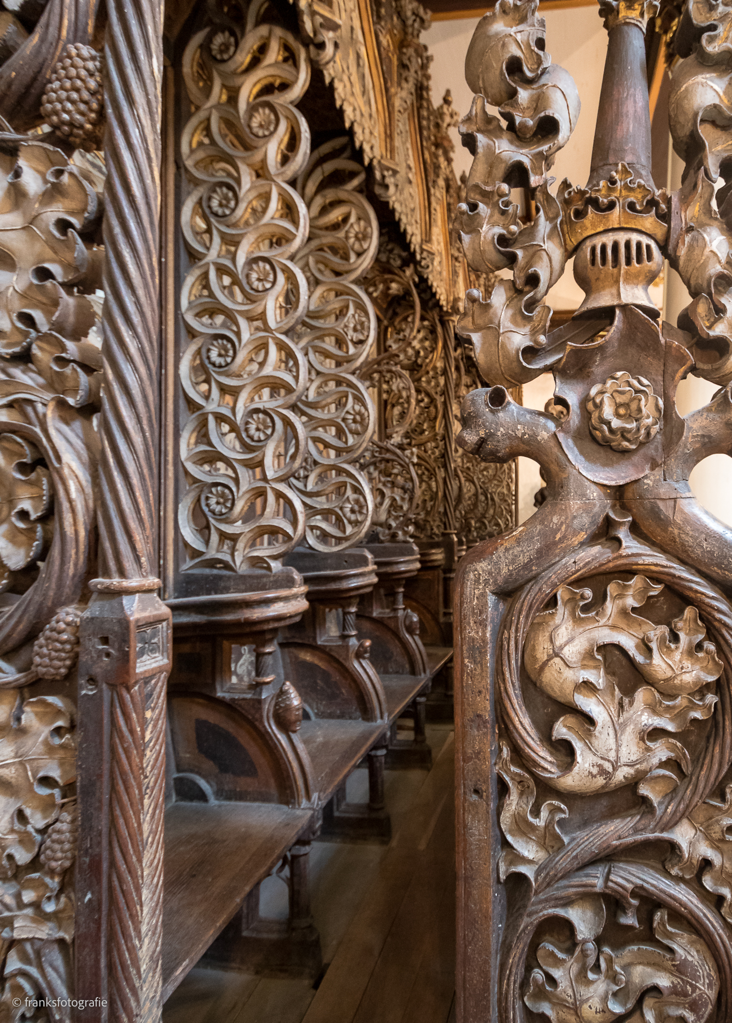 Im folgenden kommen Bilder aus dem Rundgang durch die Wohnräume im dritten Obergeschoss, die dem Herzog vorbehalten waren. Die Bezeichnung als kurfürstliche Gemächer rührt aus der Zeit, als Altenburg gelegentlich vom sächsischen Kurfürst für seine Aufenthalte in Altenburg genutzt wurde.