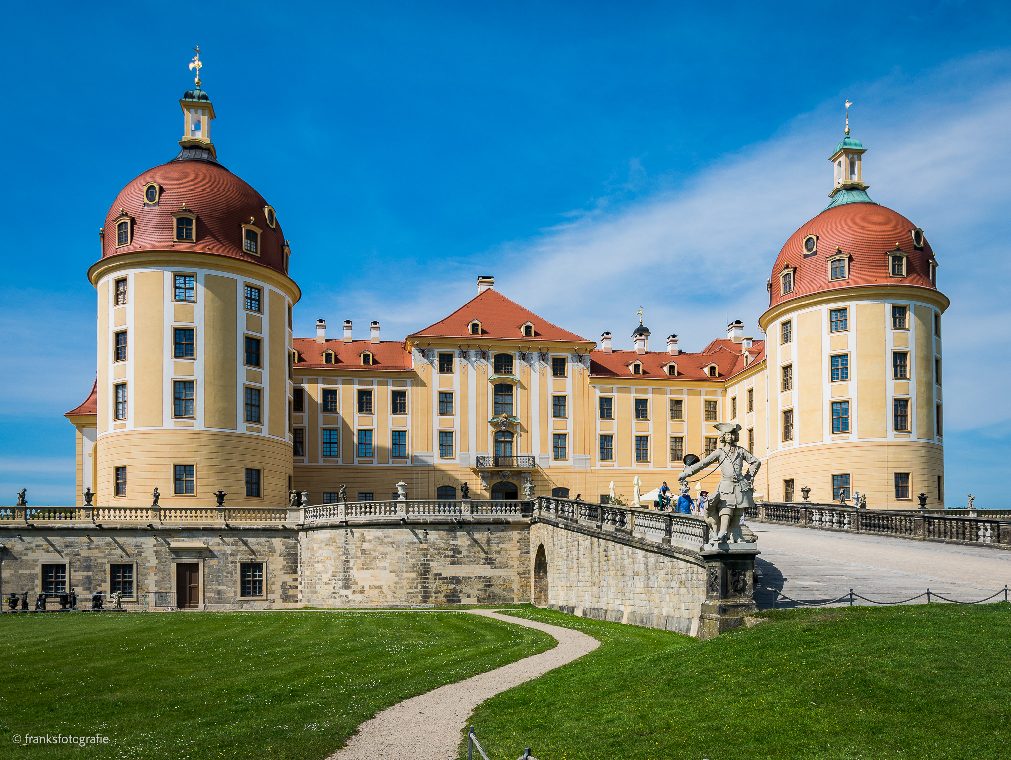 Schloss Moritzburg ist ein barockes Jagdschloss, das auf einer Insel liegt. Das Gebäude geht auf einen Renaissancebau aus dem 16. Jahrhundert zurück und erhielt seine heutige Gestalt das zwischen 1723 und 1733 nach einem Umbau durch Matthäus Daniel Pöppelmann. Das war in der Regierungszeit August des Starken.