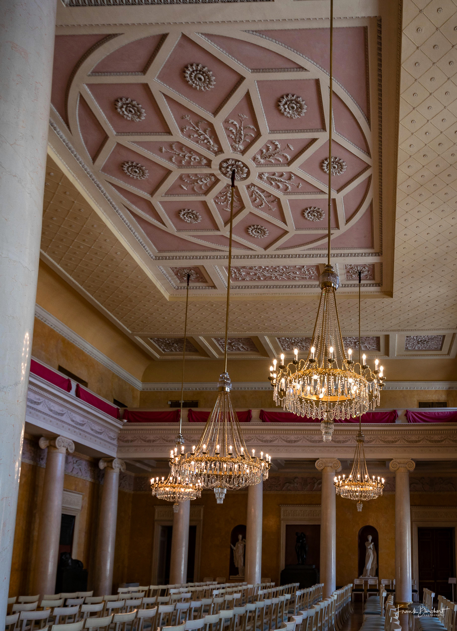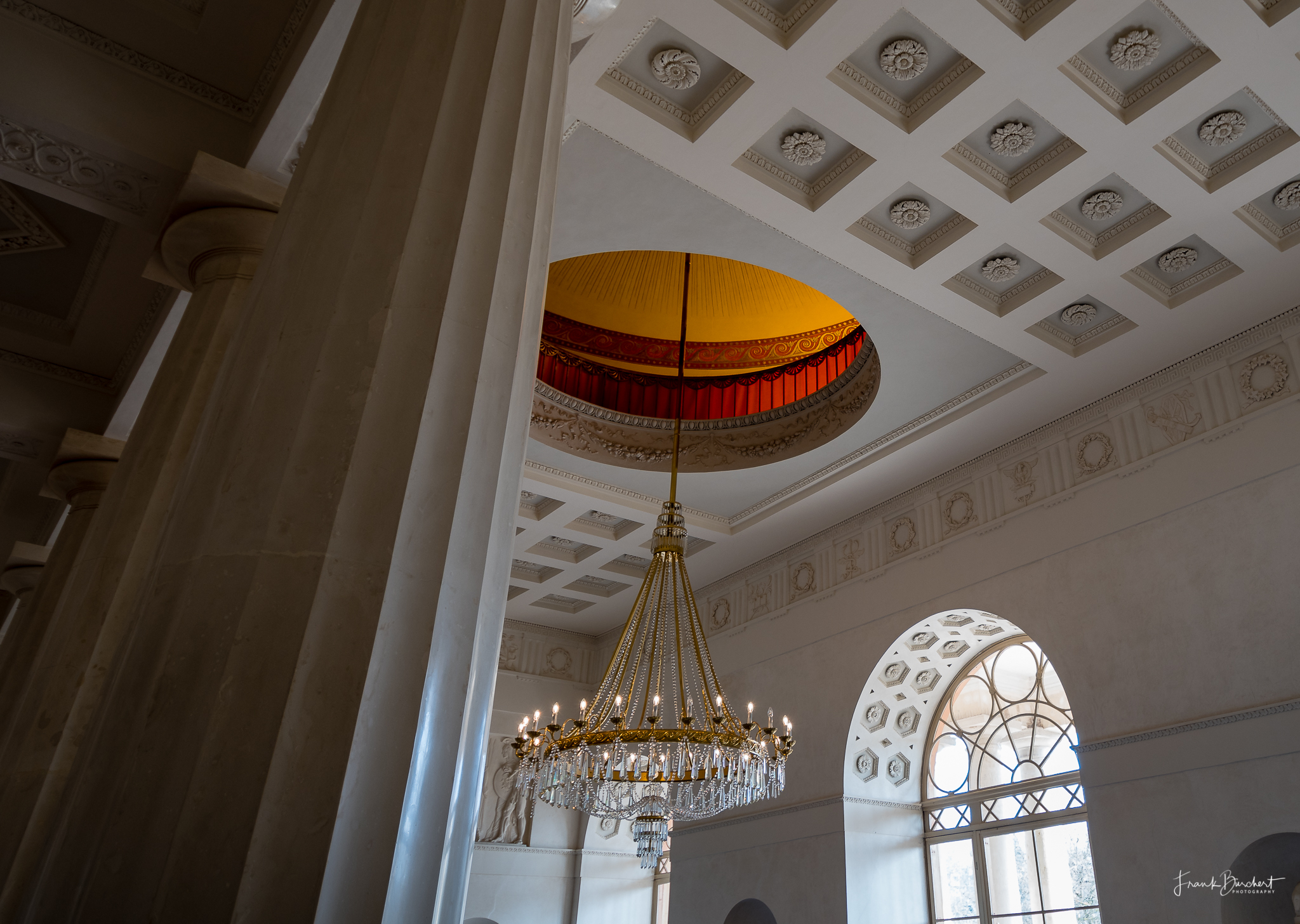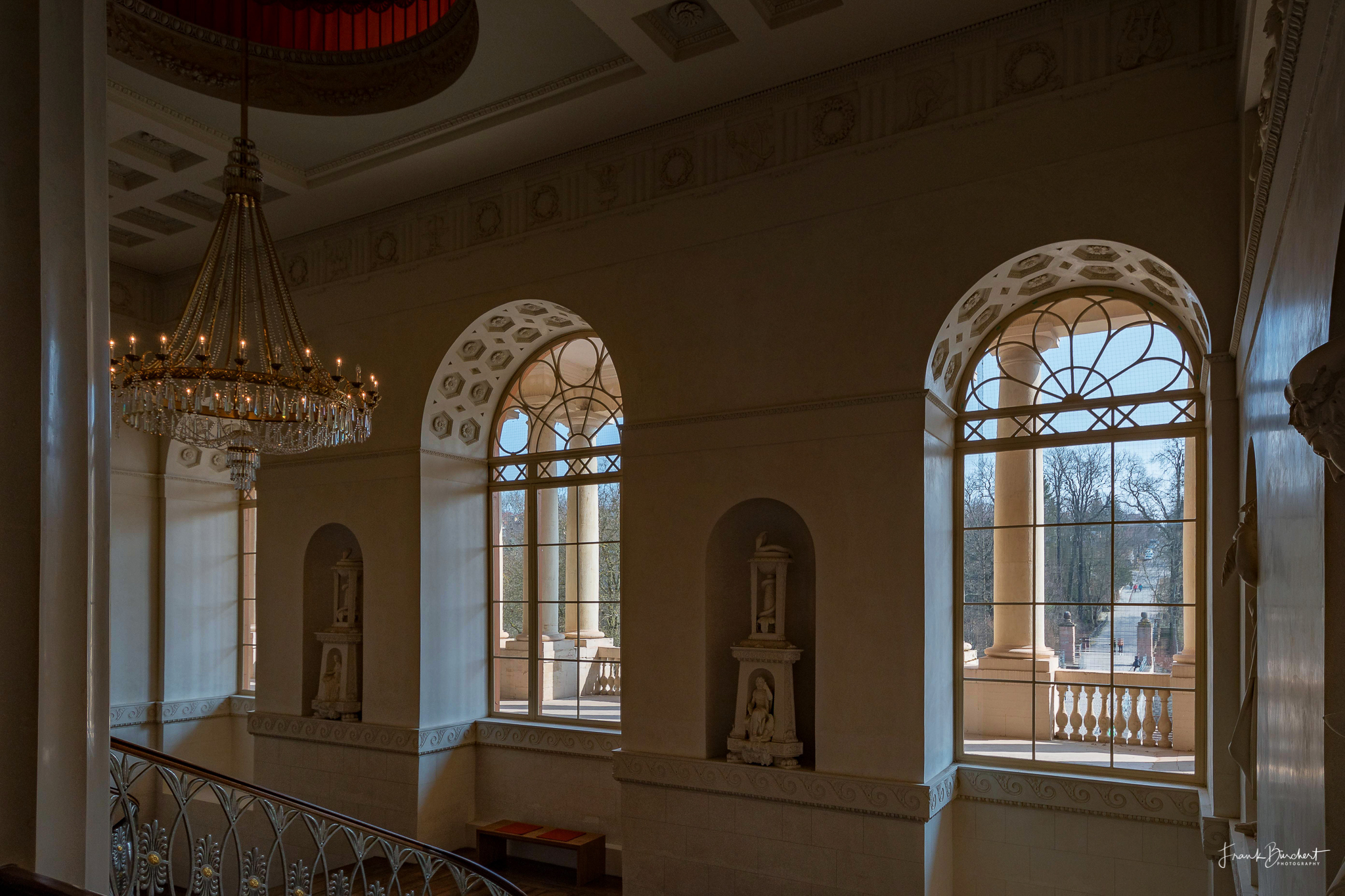 Über das Gentzsche Treppenhaus gelangt man vom Schlosshof über das Entréezimmer fast direkt in den Festsaal. Eine weitere grandiose klassizistische Raumschöpfung, für dessen Ausgestaltung wiederum Goethe für den Architekten Heinrich Gentz einige Ideen ablieferte.
