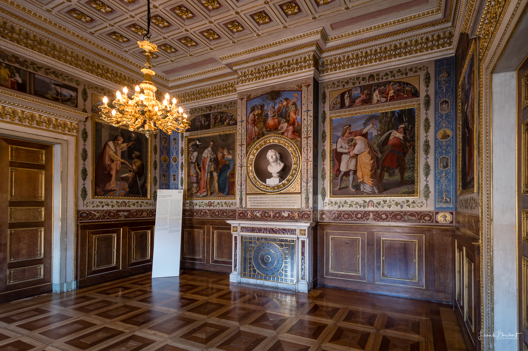 Was zunächst eine Katastrophe war, sollte sich im Nachhinein dann doch als ein Glücksfall herausstellen. Denn Weimar machte aus der Not eine Tugend und rief 1789 eine Schlossbaukommission ins Leben, die unter Leitung Goethes das Stadtschloss von Weimar in eine klassizistische Idealwelt umwandelte. Die wir auch heute noch bestaunen können …