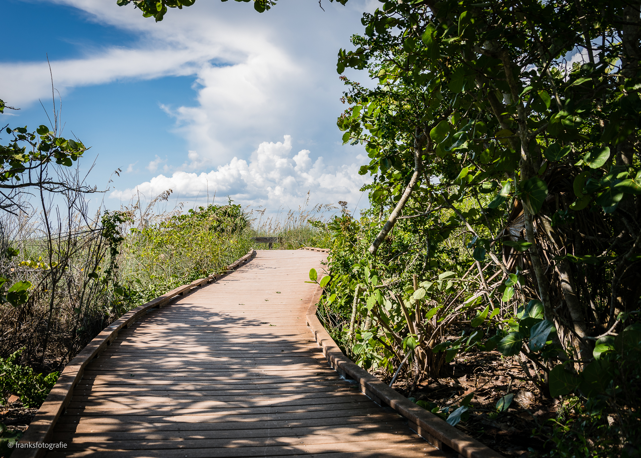 Zu beiden Stränden gehört auch ein Stückchen Natur mit den für Florida typischen Mangrovenwäldern und allerlei Wildtieren, allen voran den Schildkröten. Übrigens, die Hinweisschilder stehen nicht umsonst da. Man sollte man vor dem Wegfahren tatsächlich unter dem Auto nachschauen, ob sich dort nicht eine Schildkröte zum Schutz vor der Sonne verkrochen hat..