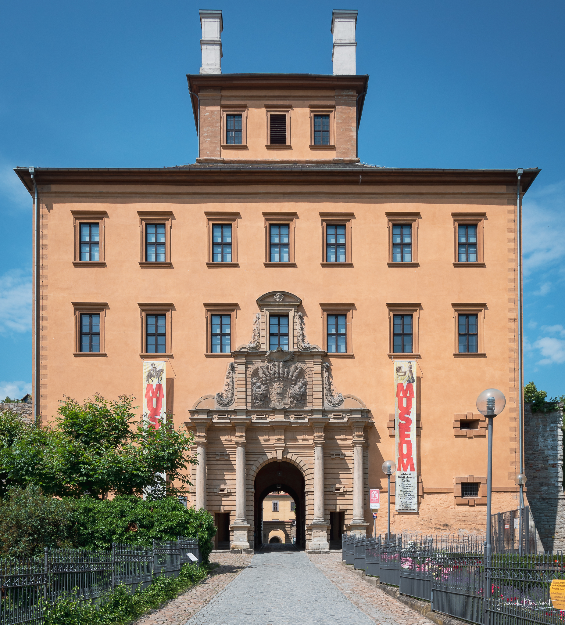 Die nächste Station lag in Zeitz: Schloss Moritzburg an der Elster. Seine Entstehung haben wir sozusagen dem Tod des sächsischen Kurfürsten Johann Georg I. 1656 zu verdanken. Er verfügte in seinem Testament, dass nicht nur der älteste Sohn in der Herrschaft nachfolgen sollte, sondern stattete auch die jüngeren Brüder mit jeweils eigenen Herrschaftsbereichen aus. Die sächsischen Sekundogeniturfürstentümer, also offizielle Nebenlinien, entstanden. Diese waren Sachsen-Weißenfels, Sachsen-Merseburg und Sachsen-Zeitz.
